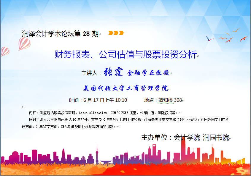 张霆:财务报表、公司估值与股票投资分析