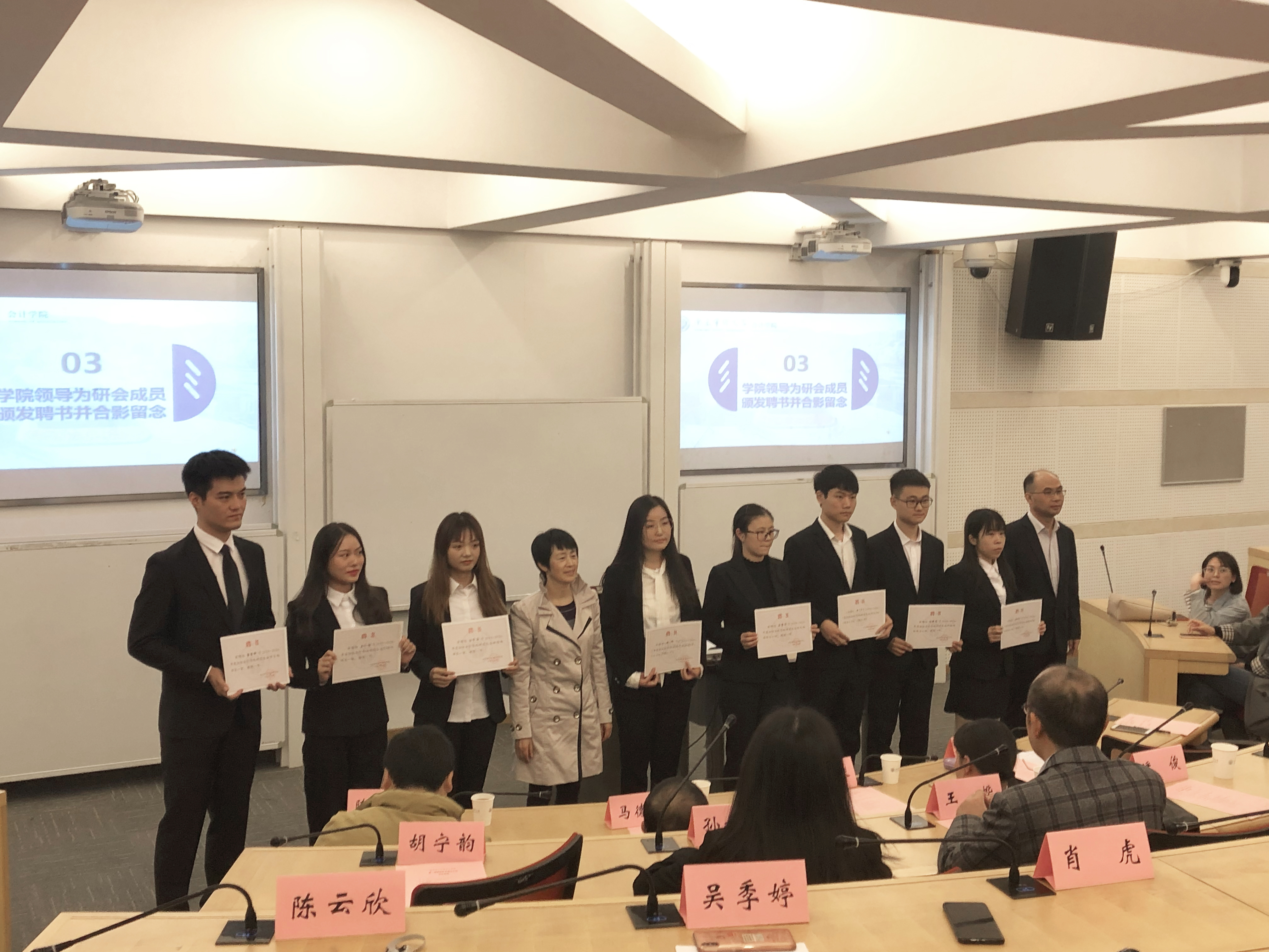 会议伊始,马德林副院长介绍了91视频 研究生成立背景、意义,简单介绍了研究生会干部招聘流程,并宣读了《关于成立91视频 研究生会的决定》。曹惠琴、朱惠媛、殷俊明等领导向91视频 研究生会成员颁发聘书。