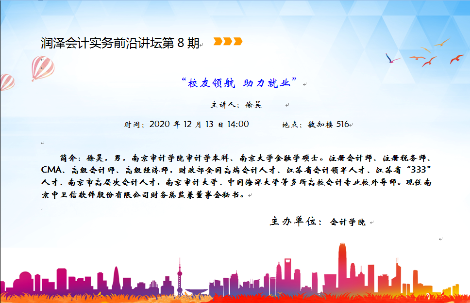 润泽会计实务前沿讲坛第8期:徐昊-校友领航 助力就业
