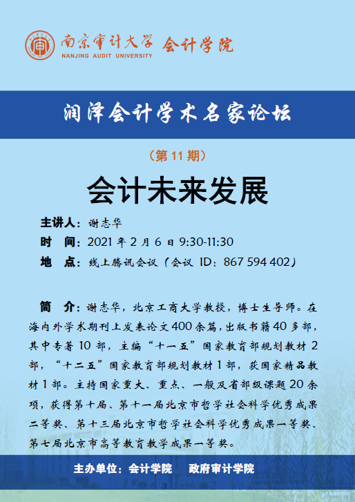 润泽会计学术名家论坛第11期:谢志华-会计未来发展