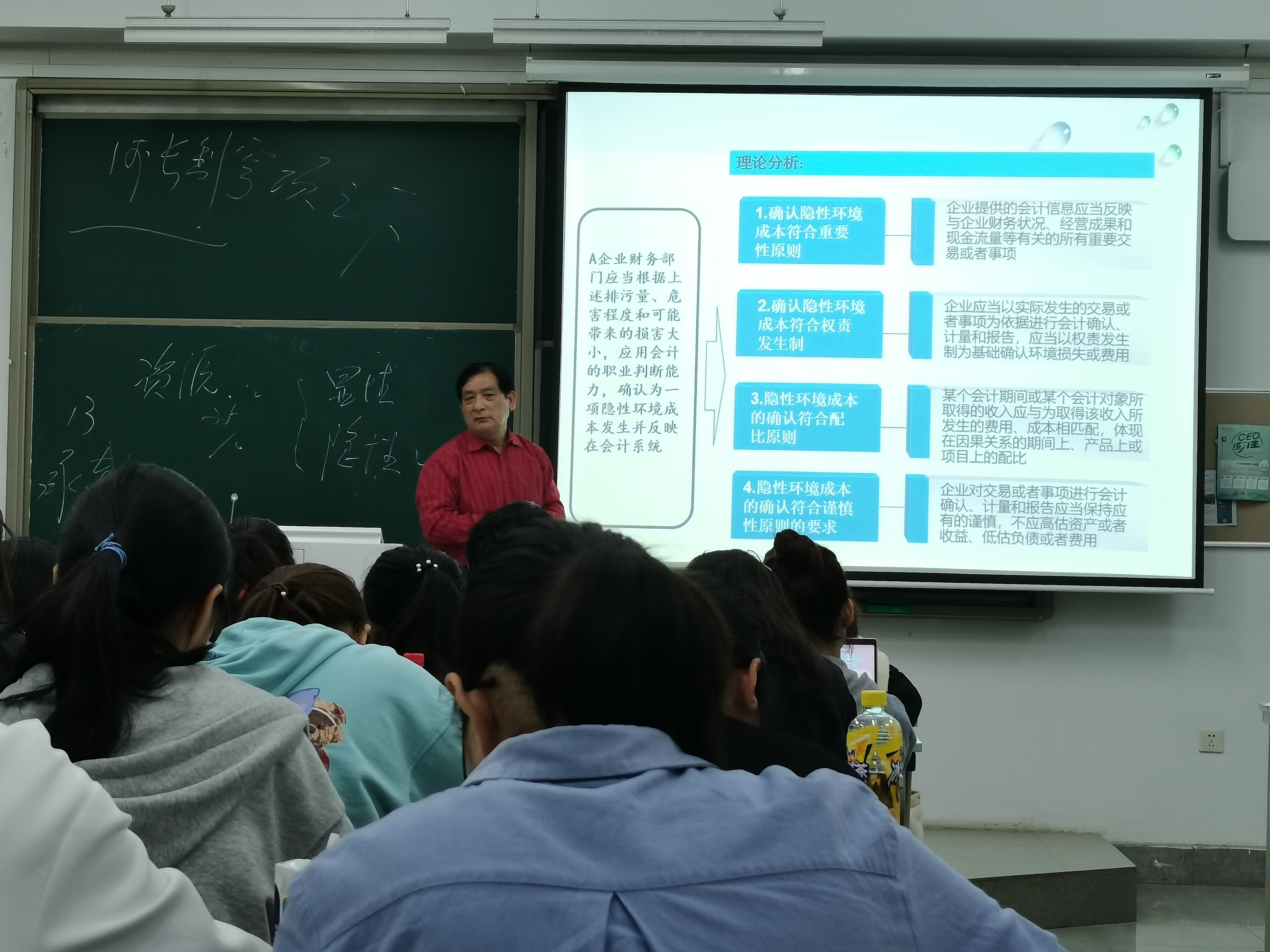 2021年4月21日晚,南京信息工程大学袁广达教授在91视频 敏知208教室开展了主题为“企业环境责任与会计师对隐形环境成本的确认”的学术讲座。本次讲座由91视频 院长殷俊明教授主持。