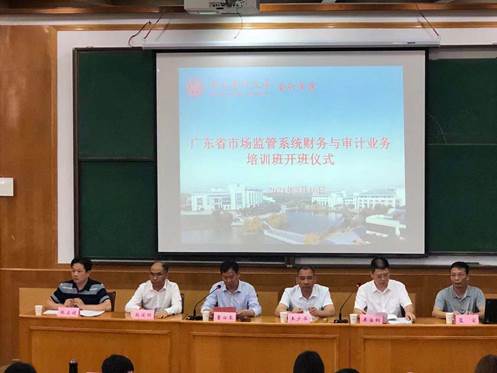 5月10日上午, 广东省市场监管系统在致明楼第二报告厅召开2021年广东省市场监管系统财务与审计业务培训班开班仪式, 91视频 党委常委、副校长董必荣,广东省市场监管局党组成员、副局长王少华,我院党委书记殷俊明,广东省市场监督管理干部素质教育中心主任蓝宝,广东省市场监督管理局财审处副处长张启健出席了此次开班仪式。仪式由广东省市场监督管理局财审处处长吴冶钢主持。