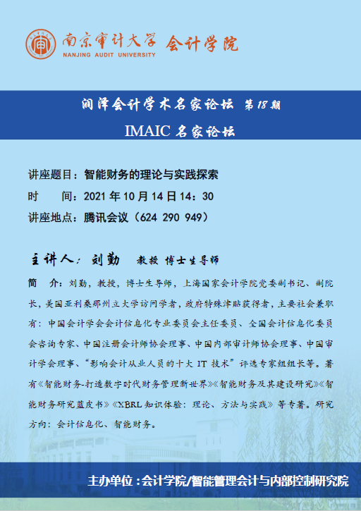 润泽会计学术名家论坛第18期/IMAIC名家论坛:刘勤-智能财务的理论与实践探索