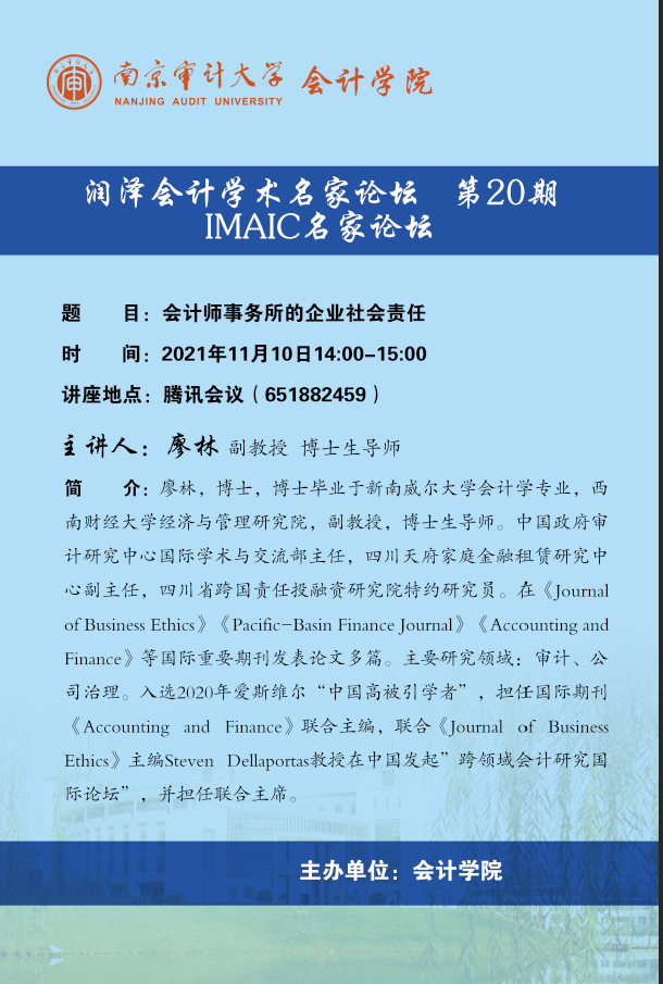 润泽会计学术名家论坛第20期/IMAIC名家论坛:廖林-会计师事务所的企业社会责任