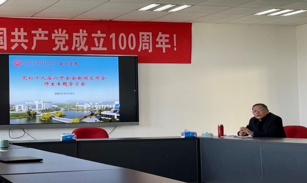 党委书记殷俊明强调,要把学习宣传贯彻党的十九届六中全会精神作为当前和今后一个时期的重大政治任务;要学以致用,把学习六中全会精神与教学科研相结合,会议精神要进课堂;要学研相结合,全体教师和研究生要结合各自专业和研究方向,深入研究六中全会精神,把准科学研究方向。