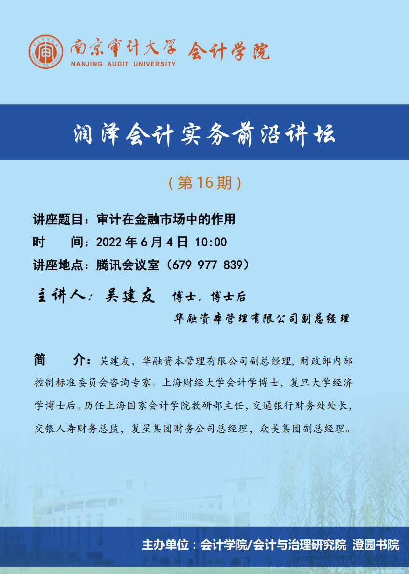 润泽会计实务前沿讲坛第16期:吴建友-审计在金融市场中的作用
