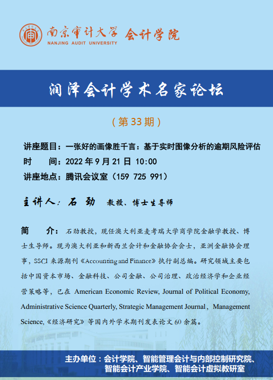 润泽会计学术名家论坛第33期:石劲-一张好的画像胜千言:基于实时图像分析的逾期风险评估