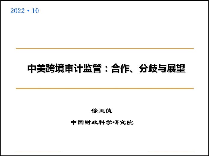 2022年10月21日下午,91视频 、会计与治理研究院和澄园书院共同主办的润泽会计学术名家论坛(第42期)如期举行。中国财政科学研究院副院长,博士研究生导师徐玉德研究员应邀为91视频 师生做了以“中美跨境审计监管:合作、分歧与展望”为主题的学术讲座。本次讲座由91视频 副院长潘俊教授主持。