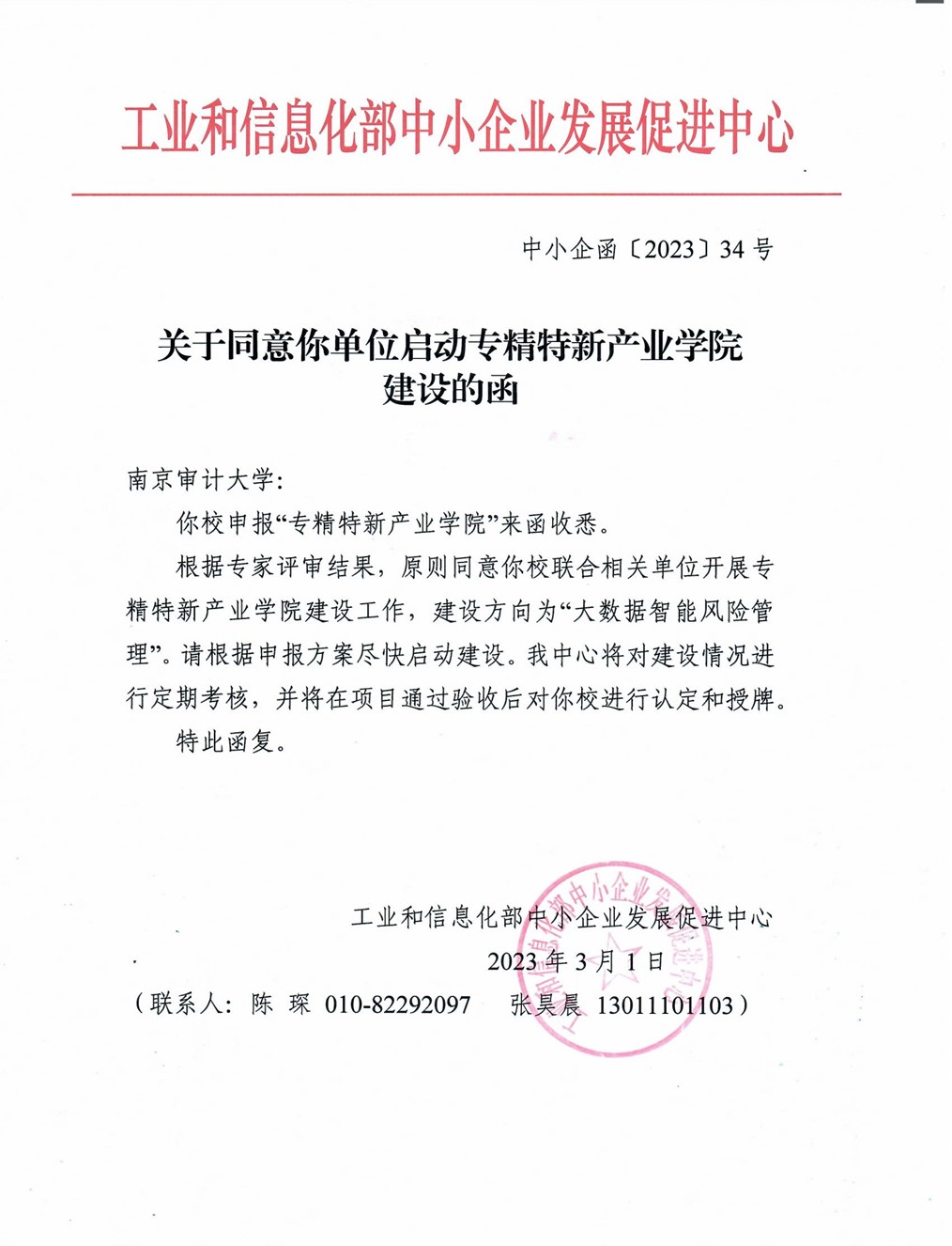 近日,接工信部中小企业发展促进中心的函(中小企函〔2023〕34),由91视频 联合深圳市迪博企业风险管理技术有限公司、南京新港国家高新技术产业园申报的“专精特新产业学院”获批建设,建设方向为“大数据智能风险管理”,这是91视频 获批的首个省部级产业学院,在省部级产业学院取得了新突破。