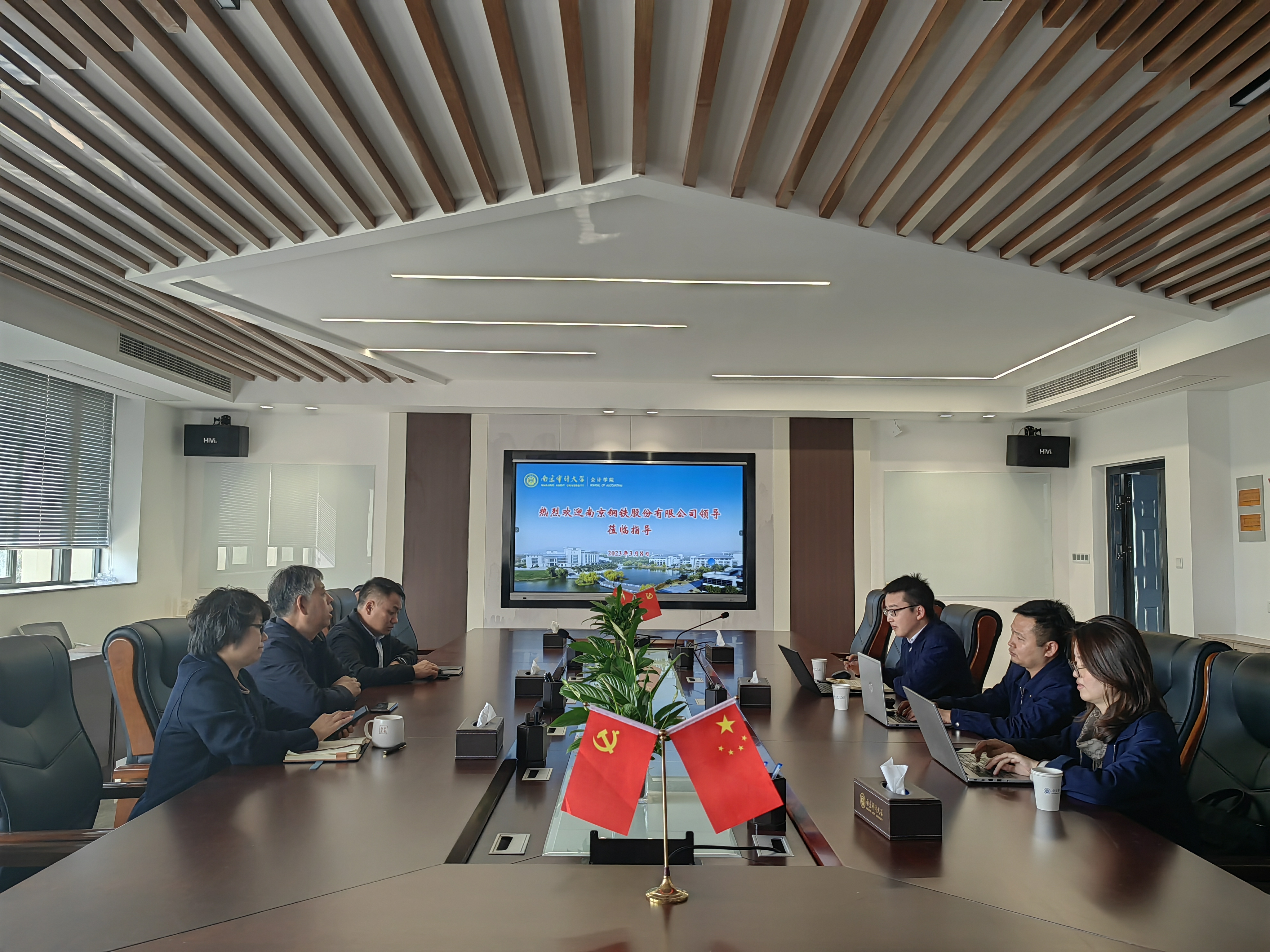为全面贯彻落实教育部办公厅《关于开展全国高校书记校长访企拓岗促就业专项行动的通知》等文件精神,持续推进2023届高校毕业生高质量就业,应91视频 的邀请,3月8日上午,南京钢铁股份有限公司人力资源部资源配置室副主任王涛、财务部综合室副主任徐伟冲、财务部成本费用室副主任黄旭来91视频 访问交流。91视频 党委书记吴春梅、院长温素彬和副院长潘俊对到访领导予以了热情接待。