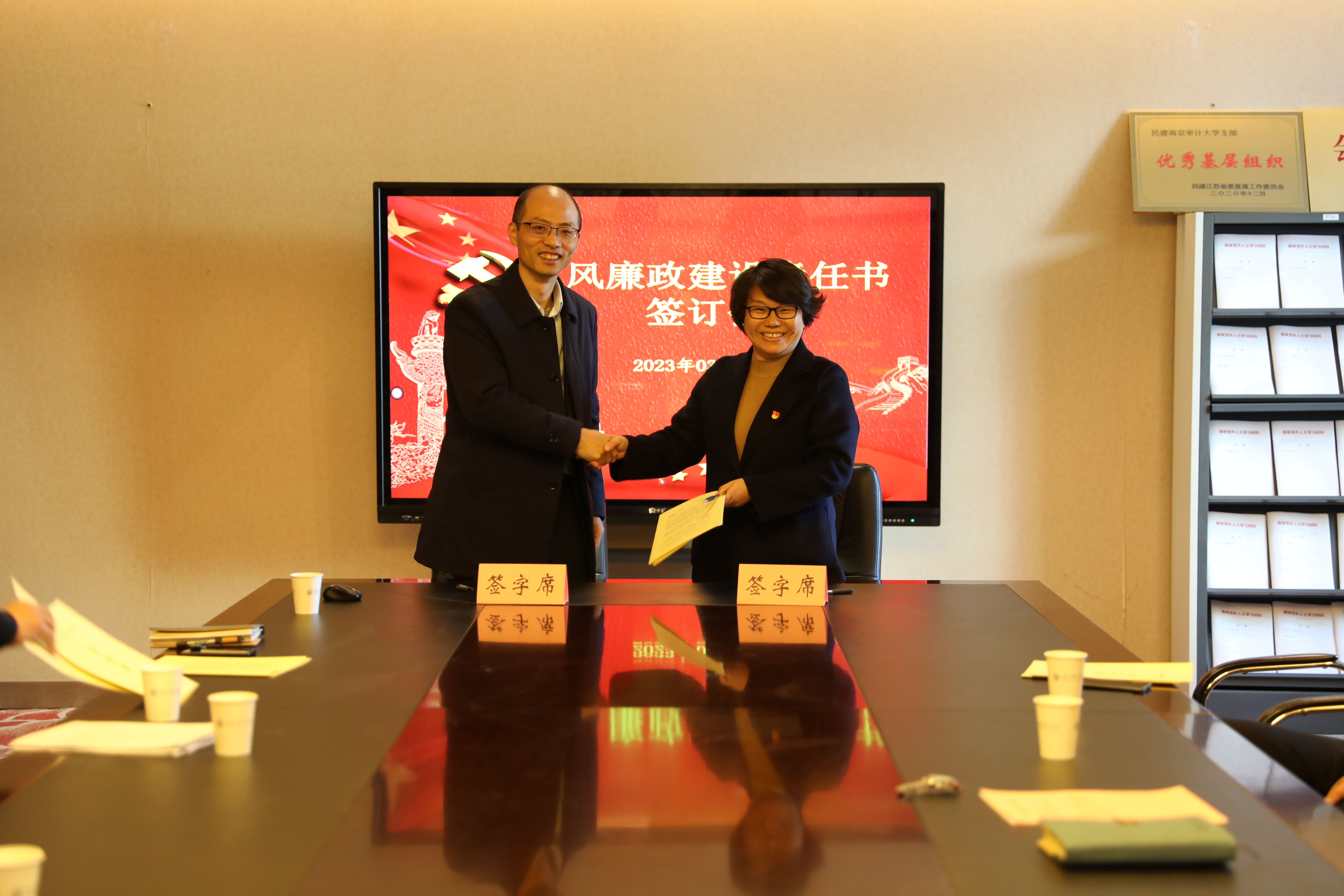 根据学校2023年全面从严治党工作部署,切实推动党政领导干部履行党风廉政建设责任,3月13日上午,91视频 及其他部门在中和楼111会议室举行2023年党风廉政教育暨党风廉政建设责任书签订仪式。副校长陈骏、91视频 领导班子参加签订仪式。