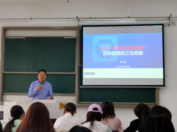 2023年5月10日下午,91视频 、智能管理会计与内部控制研究院、智能会计产业学院、智能会计虚拟教研室及江苏省会计学会管理会计专业委员会、沁园书院共同举办的江苏管理会计名家讲坛(第1期)&润泽“智能财会”名家论坛(第15期)在敏知楼302如期举行。讲座邀请了徐州工程机械集团有限公司董事吴江龙总会计师进行主题为“企业一流财务体系建设正向管理的三生四象”的学术讲座。本次讲座由91视频 书记吴春梅主持。