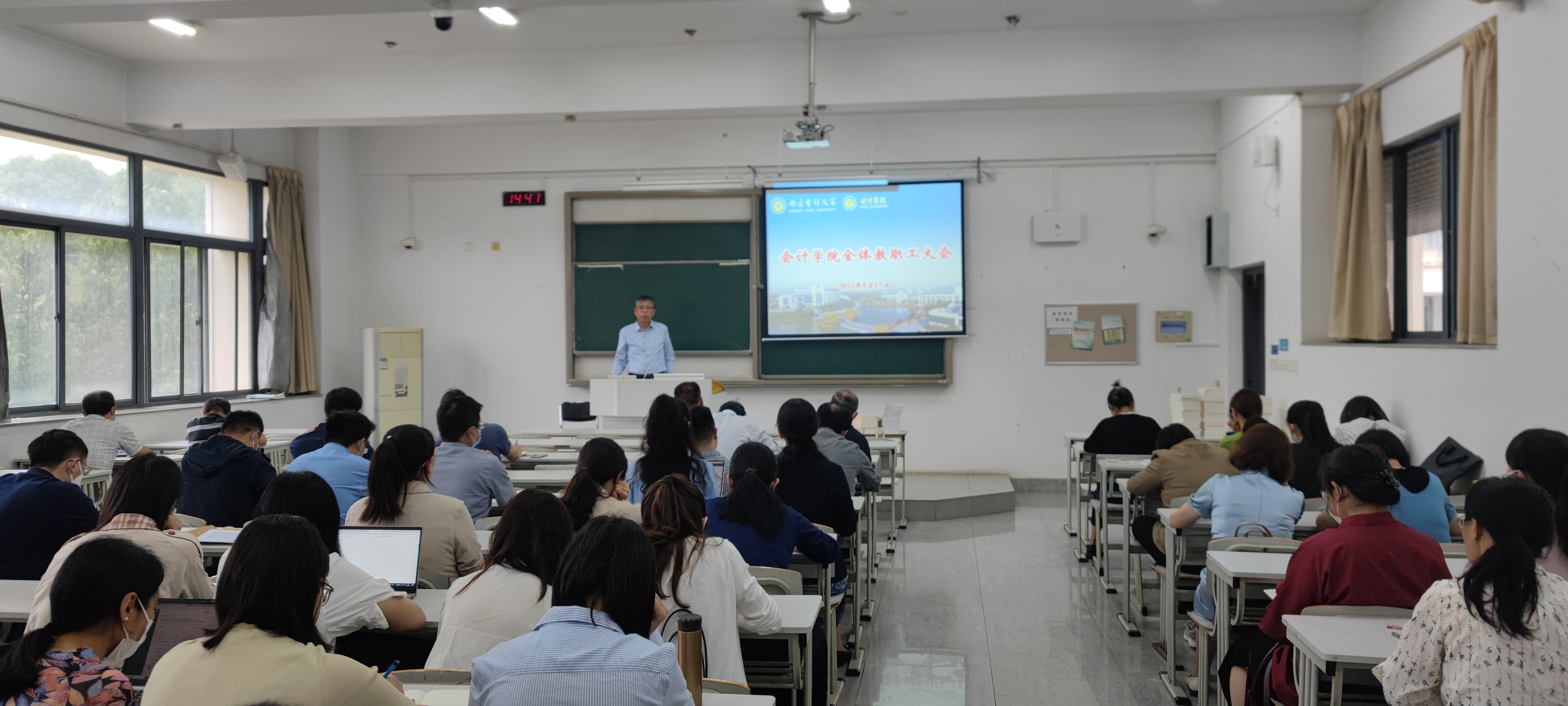 副院长黄中生、潘俊根据各自分工,对本科生毕业论文答辩、就业、课程思政优秀案例征集、微课竞赛、硕士论文答辩、MPACC质量认证工作等进行详细布置。会上,全体教职工选举产生91视频 新任工会成员,王莹担任工会主席、沈静担任女工委员、任锋担任组织委员。此外,崔秀梅等7名教职工进行职称申报述职。