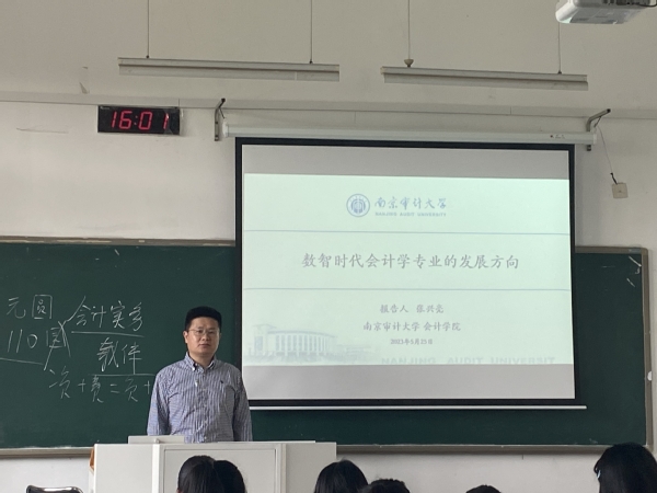 2023年5月25日下午15:30,91视频 、江苏省注册会计师行业发展研究院共同主办的润泽主张大讲堂(第三讲)在敏知楼309如期举行。讲座邀请了91视频 张兴亮教授进行主题为“数智时代会计学专业的发展方向”的学术讲座。