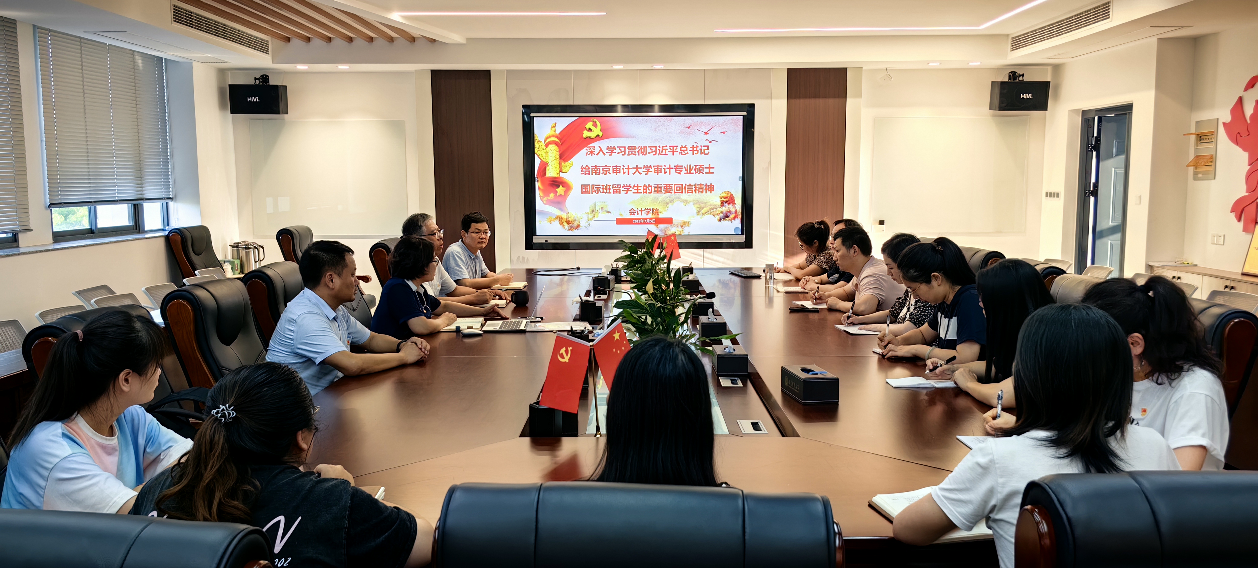 7月5日下午,91视频 举行理论学习中心组(扩大)会议,第一时间深入学习贯彻习近平总书记给审计专业硕士国际班留学生的重要回信精神。91视频 班子成员、支部书记和行政人员参加会议,会议由91视频 党委书记吴春梅主持。