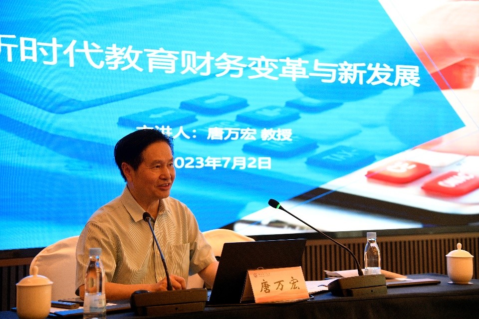 南京师范大学原副校长、江苏省教育会计学会会长唐万宏作“新时代教育财务变革与新发展”的主题报告,他回顾了我国教育财务发展与变革的历程,详细阐述了教育财务面临的新形势,他强调高校财务管理要服务于教育高质量发展,推动财务管理向财务治理的制度化转变,提出了推进高校财务与教育事业发展融合的具体路径,为高校财务管理提供了新的思路和方向。