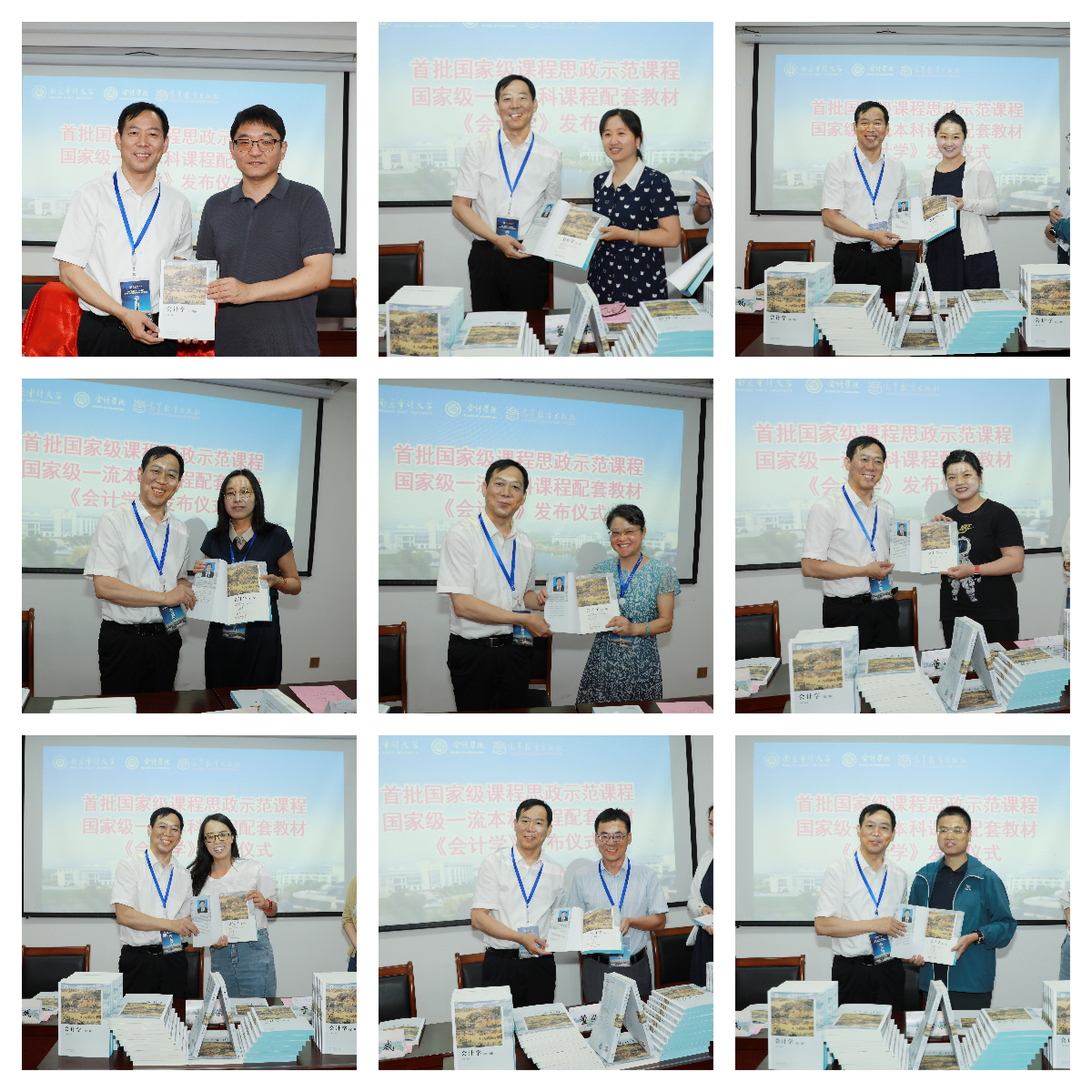 开班仪式上,同步举行了首批思政示范课程、国家级一流本科课程配套教材《会计学》发布仪式和赠书仪式。教材主编董必荣、高等教育出版社经管法事业部主任于明、编辑王威,和温素彬共同为新书揭幕。董必荣为南京理工大学、江苏大学、太原理工大学等领导和老师签名赠书,现场气氛热烈。新版《会计学》教材融合了智能化等新信息技术环境下新经济的特点,反映新经济、新业态和新商业模式下的财会教学和实践变化,展现信息技术、经济业务与财务会计之间互动式发展的最新状况,实务案例丰富,是“国家级一流课程”的高质量精品配套教材。