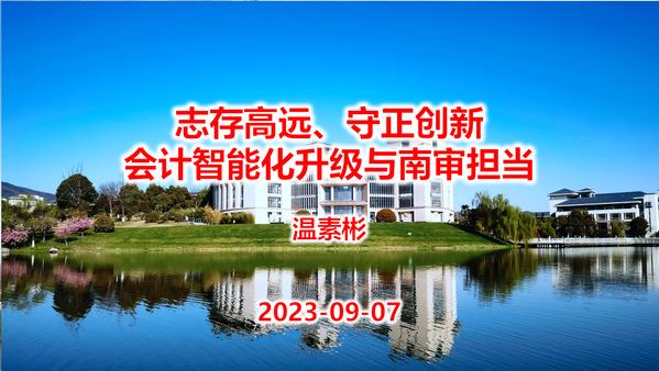 温素彬作“志存高远,守正创新:会计智能化升级与南审担当”的讲座。首先祝贺2023级研究生加入91视频 这个大家庭,从“优术,明道,取势”三大境界阐述了学习过程中的不同阶段和重要的方面,指出研究生新生需要意识到自身角色已经转变为“研究生”,不能满足于简单地接受知识,需要更深入的探索,主动进行研究和创新。接着以会计智能化之力、道、术、路为主旨,描绘了完整的会计智能化框架;进一步系统展示了91视频 会计学科布局,以及会计智能化转型升级的主要内容和培养体系,让同学们更全面地了解未来研究方向。最后,用“有思想、能吃苦、善沟通、行感恩”四个关键词与同学们共勉。