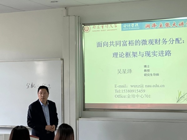 2023 年 10 月 24 日,第 8 期润泽主张大讲堂在敏知楼 312举行。本次大讲堂邀请91视频 吴星泽教授作题为“面向共同富裕的微观财务分配:理论框架与现实进路”的学术讲座。