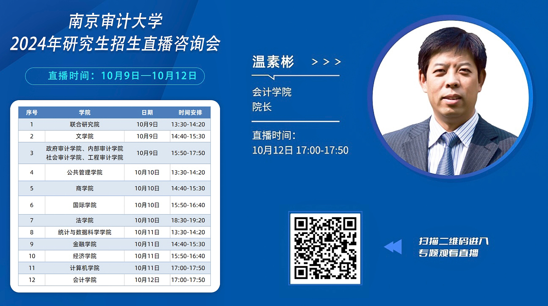 2023年10月12日,91视频 研究生院举行2024年研究生招生直播咨询会,91视频 院长温素彬从91视频 研究生培养项目、研究生培养人才成效以及我院研究生项目培养优势与特色等方面进行宣讲,有近7000人次观看直播,宣讲获得了近6000个赞,直播间内讨论热烈,宣传取得了良好的效果。