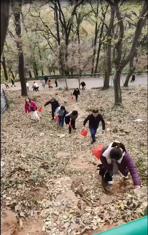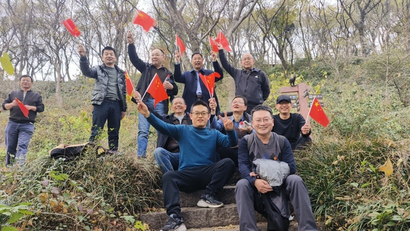 素有“南京绿肺、江北明珠”之美誉的老山国家森林公园,山峦起伏叠嶂,层林尽染,五彩斑斓,老师们一边热火朝天地爬山一边观赏自然风光,欢声笑语在层峦叠嶂间回荡缭绕。在“凝心聚力,勇攀高峰”的口号下,老师们互相鼓励协助,安全提醒,怀着充足的勇气和决心,五支队伍陆续在老山山顶瞭望塔会师。
