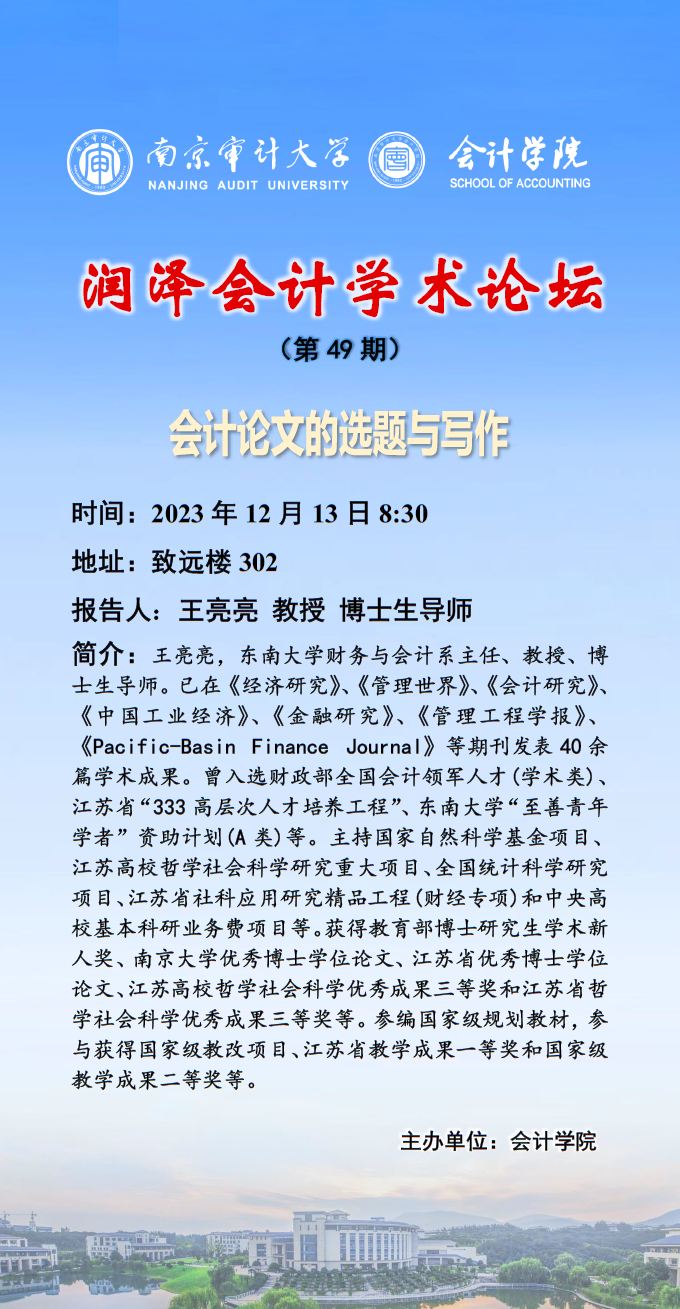 润泽会计学术论坛 (第 49 期) :王亮亮——会计论文的选题与写作