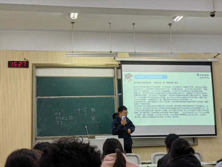 接着,他阐述了财会类热门证书的区别,分析了当下的就业形势,帮助新生更快找到职业发展方向。随后,张凯茗以具体案例讲解的方式,阐释了会计准则的应用,并从估值与咨询两方面给予财务管理实践具象化的理解。精彩的案例与生动的讲解给同学们留下了深刻的印象。