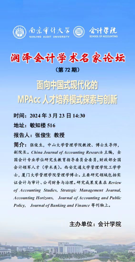 润泽会计学术名家论坛 (第 72 期) :张俊生——面向中国式现代化的MPACC 人才培养模式探索与创新