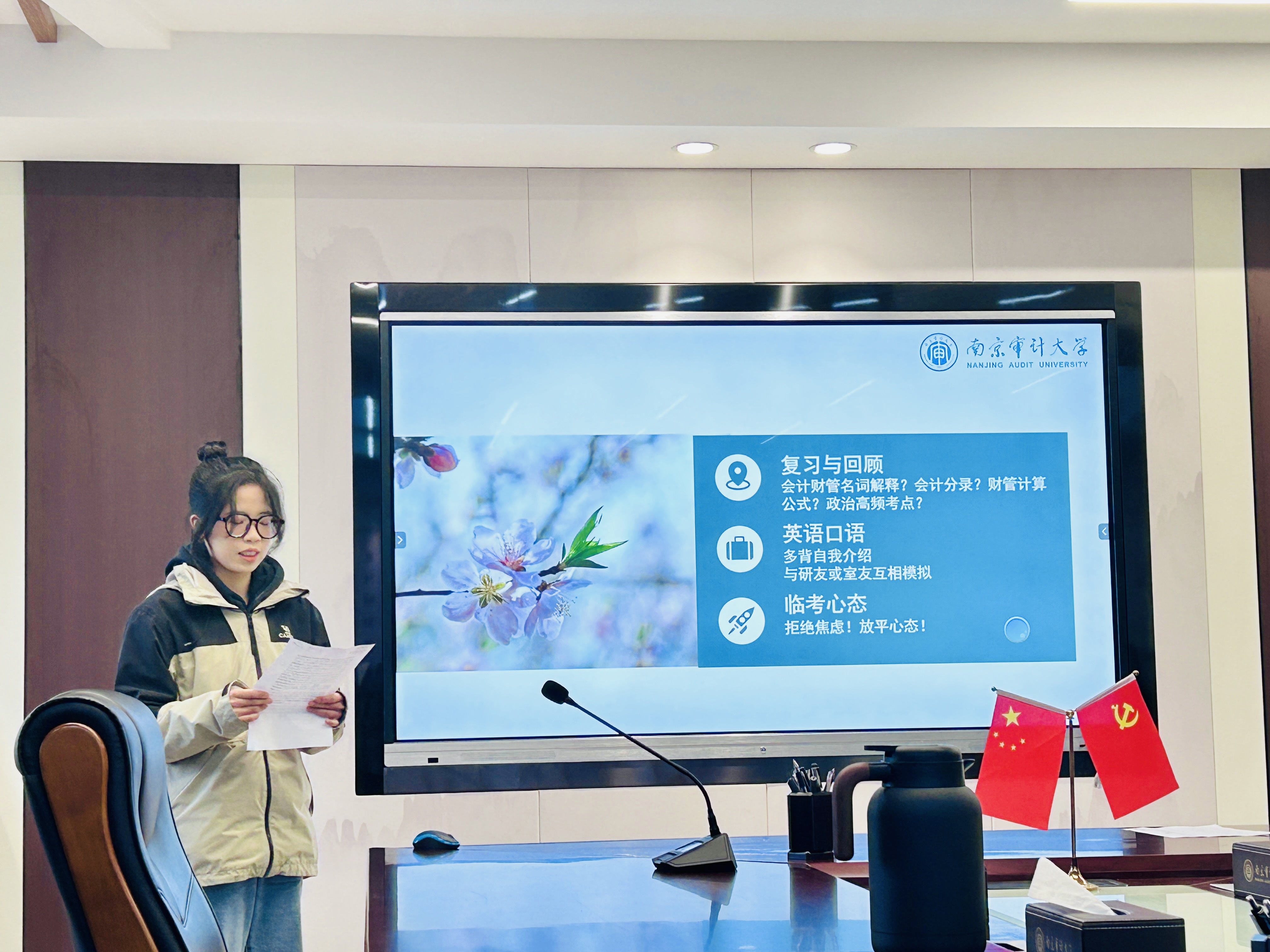 紧接着,91视频 研究生会宣传中心干事林洛妤和91视频 研究生第二党支部书记汪皓宇分别从“笔试准备、临场态度、面试技巧”和“专业知识、时事热点、逻辑表达”六个方面为研考同学分享经验;与会的学长学姐与学弟学妹进行了交流与讨论。