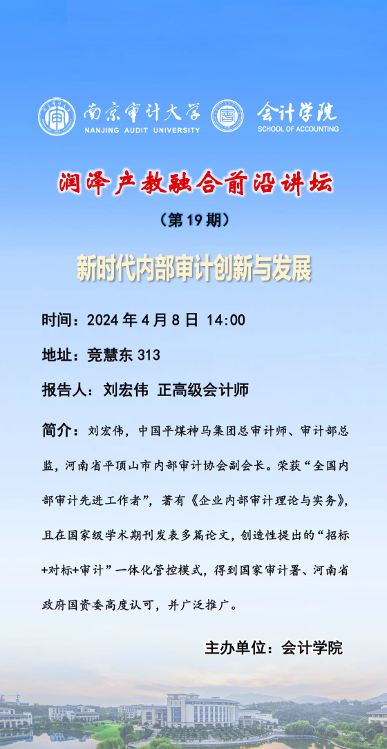润泽产教融合前沿讲坛(第 19 期):刘宏伟——新时代内部审计创新与发展