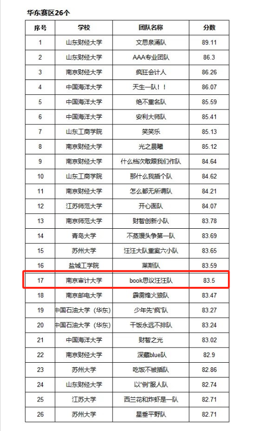 4月23日,2024年(第十届)MPAcc学生案例大赛组委会公布初赛第二阶段晋级决赛名单,91视频 会计专业研究生再创佳绩,由朱明秀老师指导的“book思议汪汪队”从全国3193支队伍中突围,以华东赛区第17名的成绩成功晋级,进入MPAcc学生案例大赛初赛第二阶段。