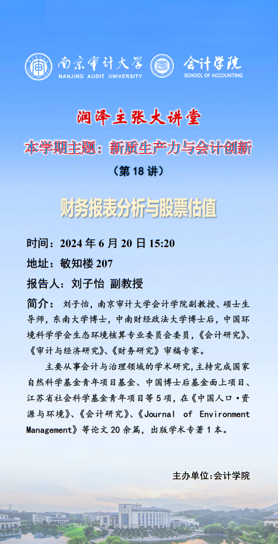 润泽主张大讲堂(第 18 讲) :刘子怡——财务报表分析与股票估值