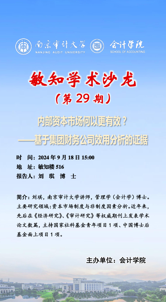 敏知学术沙龙(第 29 期):刘琪——内部资本市场何以更有效——基于集团财务公司效用分析的证据