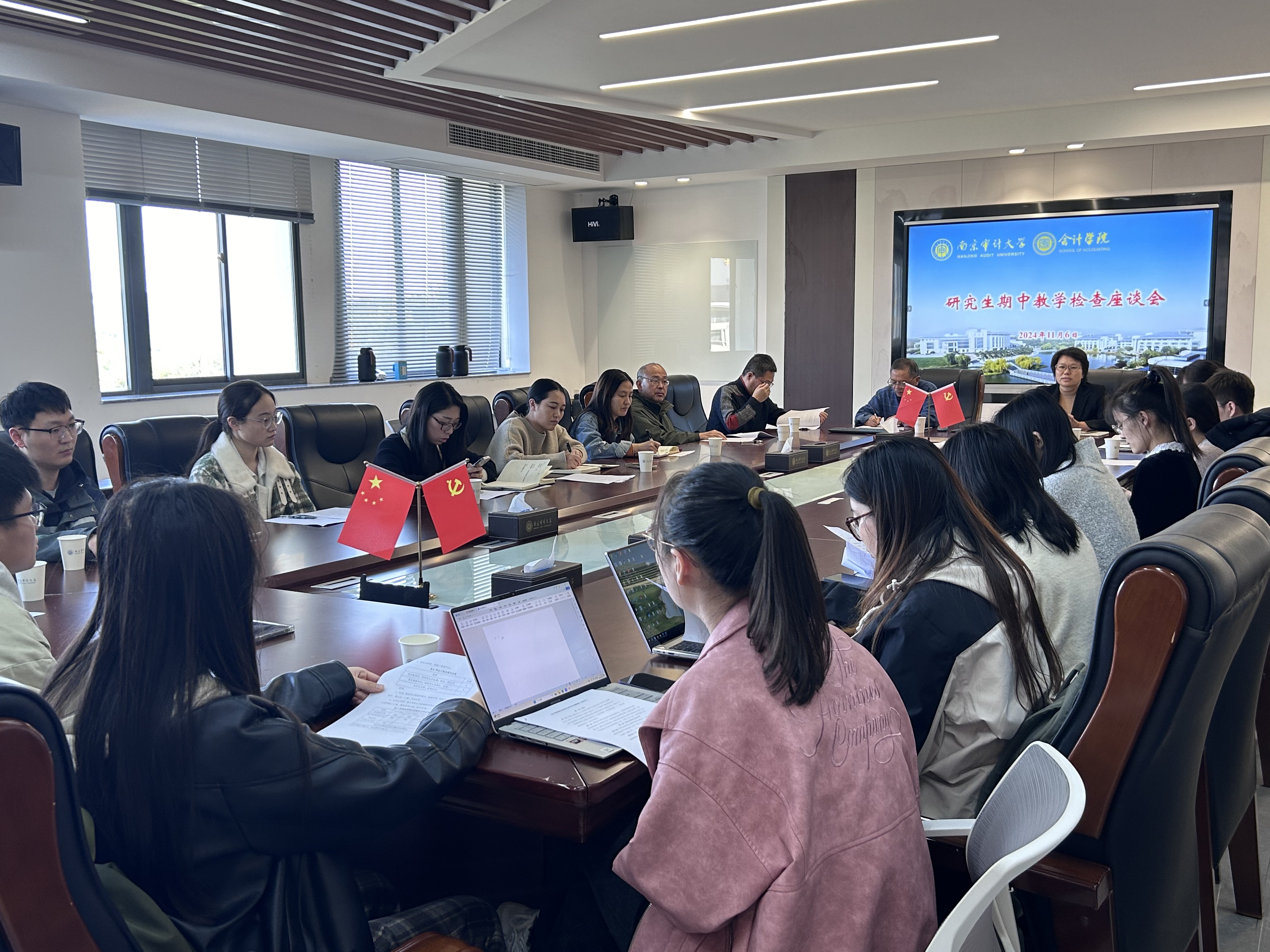 为加强研究生质量保障体系建设,提升教学和人才培养质量、扎实推进内涵建设和高质量发展,11月6日下午,91视频 在敏知楼516召开研究生期中教学检查学生座谈会。91视频 党委书记吴春梅,学院研究生教育管理工作负责人马德林,研究生教学学校督导王烨,学院督导刘国城,学科与研究生办公室王莹、沈静、肖艳,2022-2024级会计学、会计专硕研究生代表参会。会议由马德林主持。
