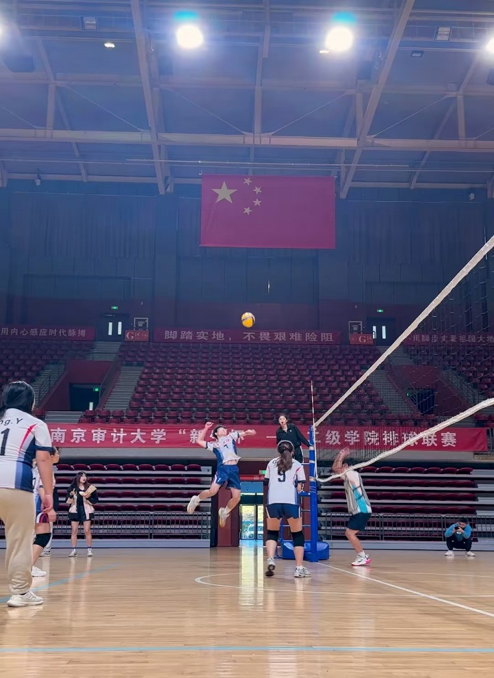 对阵社会审计学院,同学们在第一场比赛中取得胜利,并将丝毫不敢松懈的状态一直持续到后半场比赛。同学们全力以赴,场边的呐喊声和欢呼声此起彼伏。随着比赛的火热进行,同学们的状态也在不断提升。场间休息时,队长洪赛带头喊出的一声“ 加油!”吹响了球队继续进攻的号角,球员们奋力赢下每一个得分,在关键时刻放手一搏。经过全队人员的不懈努力,最终拿下了全场比赛的胜利。