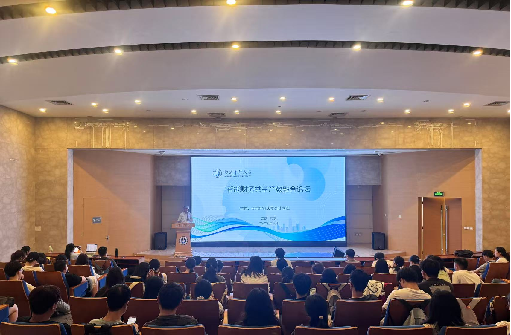 6月14日,91视频 举办“润泽产教融合讲坛”,讲坛的主题是“智能财务共享与风险管理”。本次会议由91视频 主办。中兴新云教育培训总监王沫萱、迪博风险管理技术有限公司董事长胡为民、南京钢铁股份有限公司总会计师梅家秀、中国铁路上海局集团有限公司财务共享中心负责人许国宏、91视频 院长温素彬、91视频 MPAcc中心办公室主任张金泉,以及91视频 部分师生约100人参加了会议。