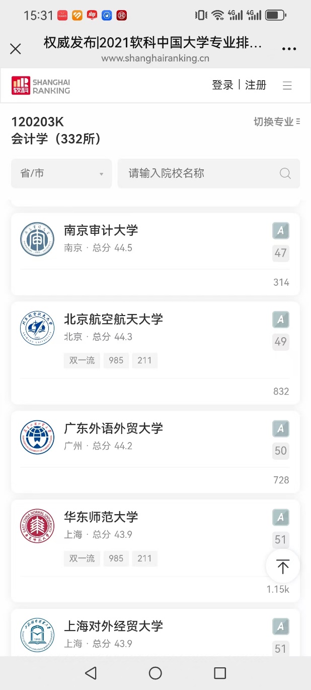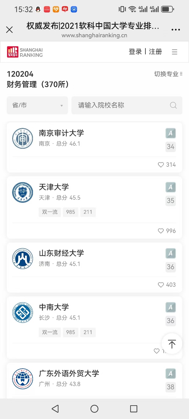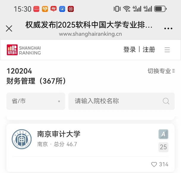 2025年高等教育专业评价机构软科发布“2025软科中国大学专业排名”,我院会计学和财务管理学专业双双获评A级,其中,会计学专业位列31名,从2021年的47位上升了16位;财务管理专业位列第25位,从2021年的34位上升了9位。