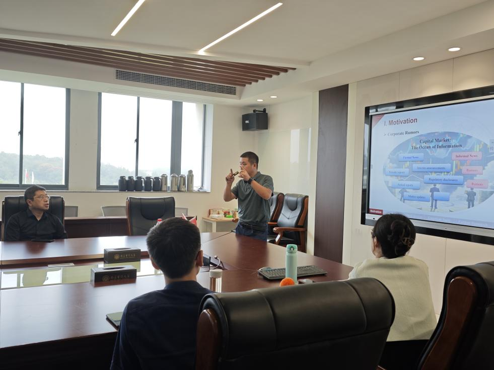 在研究方法上,权小锋介绍了团队的实证设计。他们追踪分析师在谣言爆发后的调研行为,发现不同类型的谣言作用差异显著,其中被证实的谣言往往带来更强的正面影响,并进一步扰乱了媒体信息的有效性。