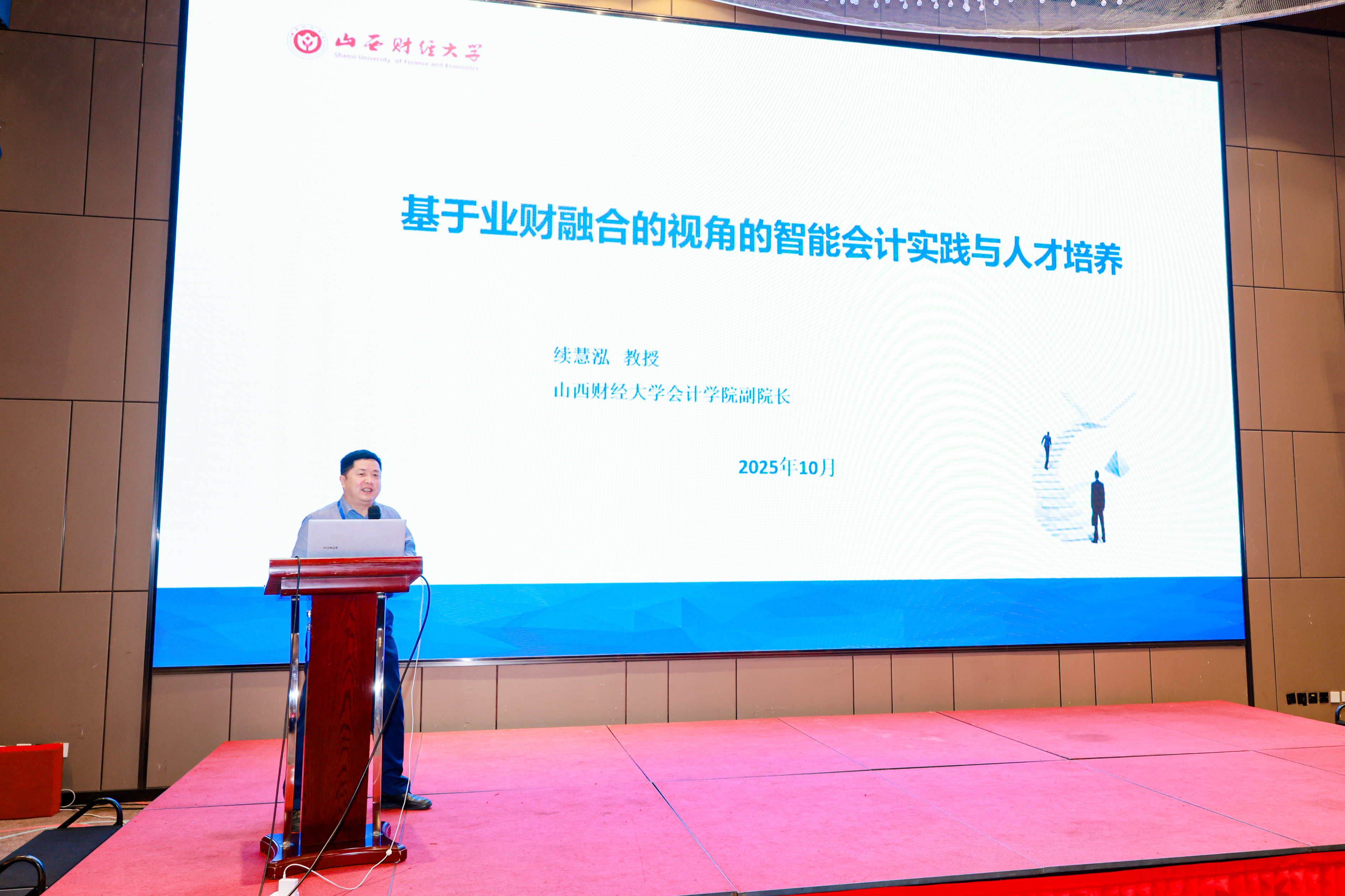 续慧泓围绕“基于业财融合视角的智能会计实践和人才培养”发表专题报告。他指出业财融合是智能会计的核心方向,并提出“复合型创新管理人才”目标,构建了涵盖基础核算、业务理解、决策管理的能力体系,强调需融合经济、技术、专业模块,打通产业链、教育链与数字链,培养兼具思维创新、伦理协同与数字化技能的会计人才。