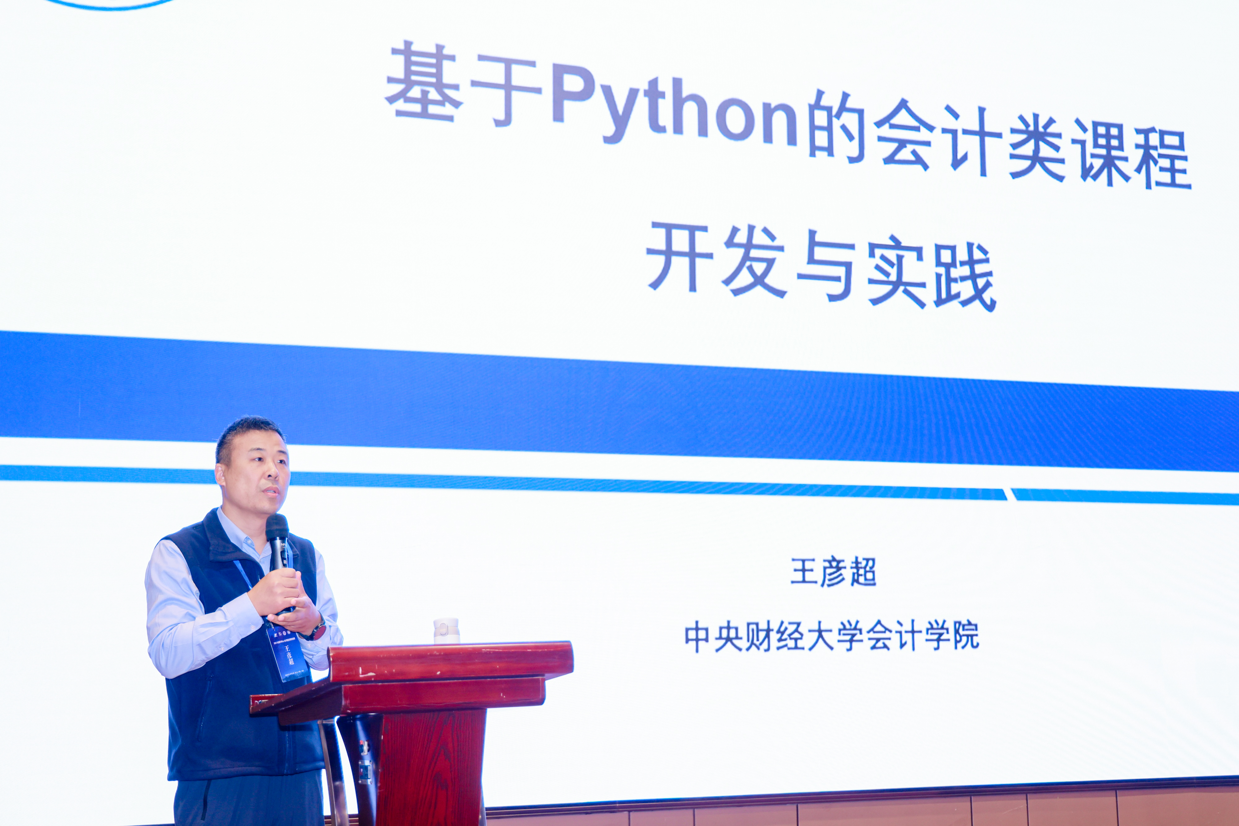 上午的主题报告由温素彬主持。王彦超以“基于Python的会计类课程开发与实践”为主题,分享了课程开发的“三层逻辑”:首先,顶层设计方面,明确学生需掌握会计语言、自然语言、计算机语言这“三大语言”,强调程序化思维比代码本身更重要;其次,课程方案方面,组建教学团队开发相关课程,结合会计场景教学,并模拟真实工作场景进行考核;最后,教学实施方面,构建助教团队,灵活调整课堂内容,确保教学内容高效实用。