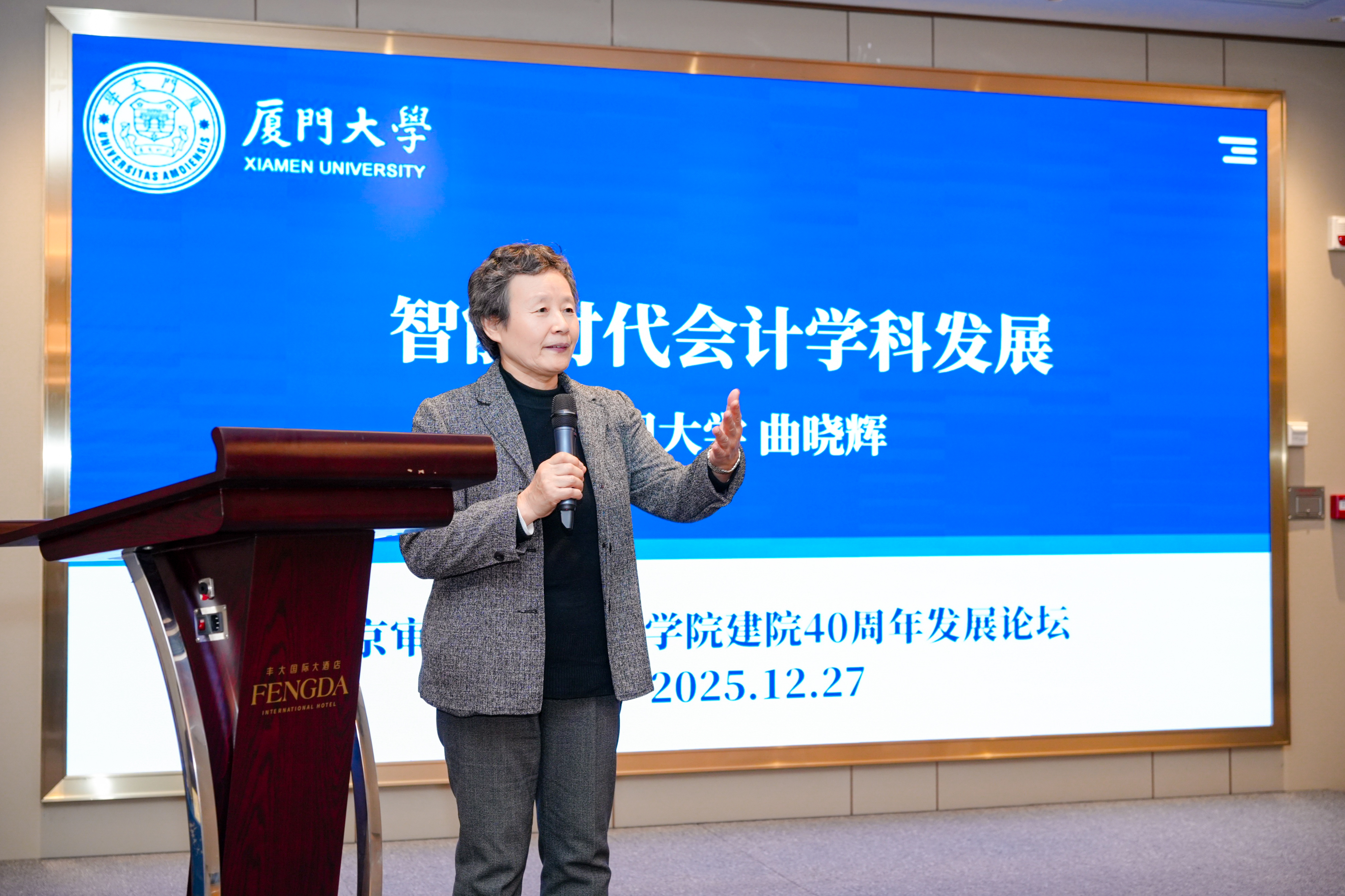 曲晓辉作“智能时代会计学科发展”的主题报告。曲晓辉指出,智能时代以AI赋能千行百业、重塑生产力与生产关系为核心特征,其发展趋势体现为大模型构建智能化系统底座、AI智能体广泛应用及数据治理日趋关键。她强调,在此背景下,学科建设呈现交叉渗透深化、AI成为共同基础、场景驱动增强等新特征。针对数智化时代会计学科的发展逻辑,曲晓辉提出应以AI工具推动科研创新、以技术重塑教学范式、以场景为核心开展社会服务。她进一步强调,会计学科应明确AI嵌入的战略方向,着力打造跨学科复合型团队,优化学科结构并加强实验室建设,深化与计算机学科及产业界的协同合作。曲晓辉的报告为智能时代会计学科转型升级提供了系统框架,指出AI与会计学科的融合不仅是技术应用,更是学科体系与教育模式的深刻变革。
