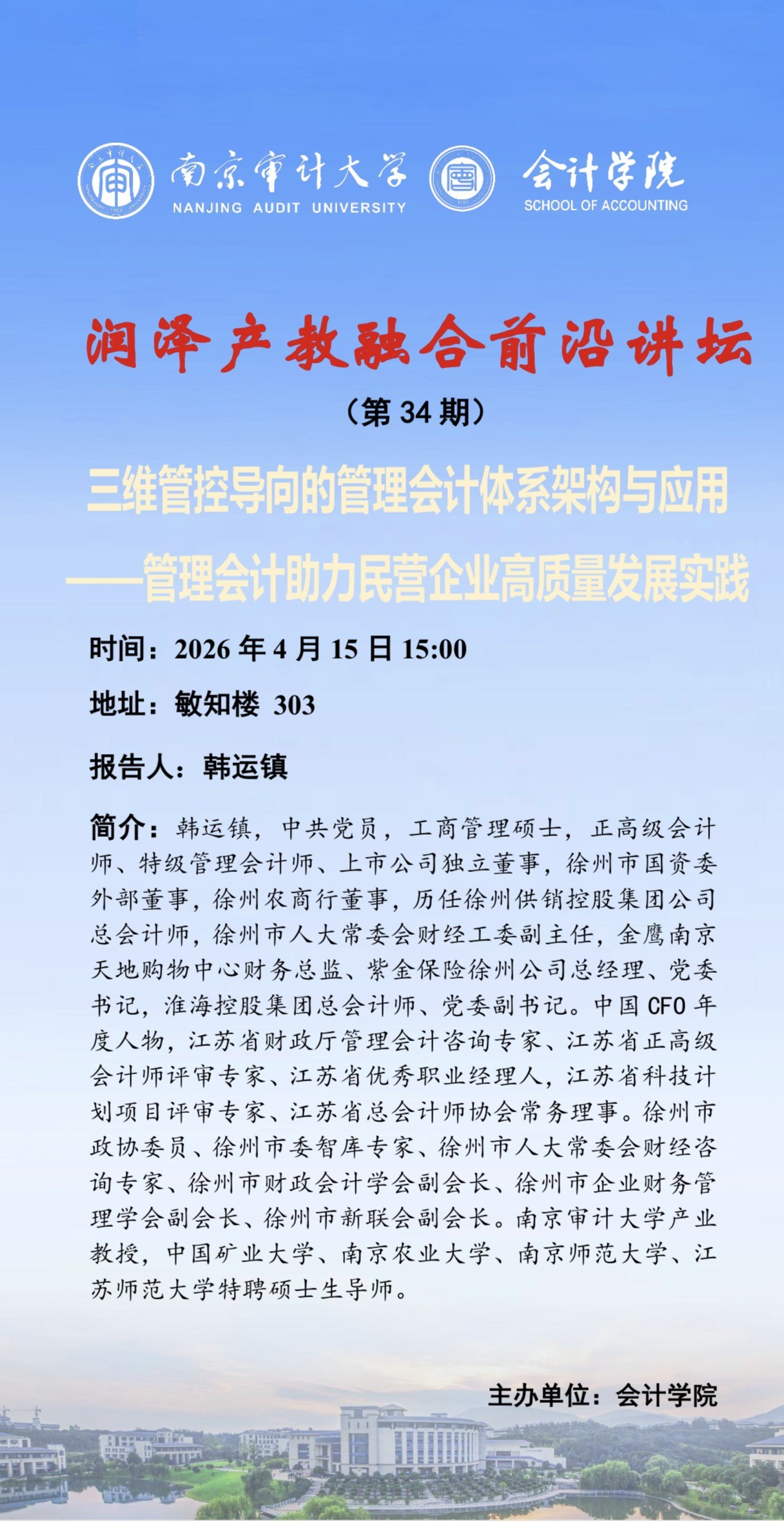 润泽产教融合前沿讲坛(第34期)韩运镇:三维管控导向的管理会计体系架构与应用——管理会计助力民营企业高质量发展实践