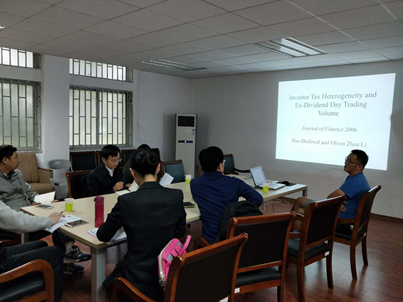 高级访问学者李真教授来学院作题为《Ex-Dividend Price Movement and Trading Volume(除息前股价变动和股票交易量)》的学术讲座。讲座于下午2时于位育楼117准时开始。