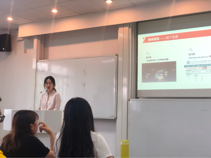 接着,来自19级会计专硕的陈娜同学就如何参与社团工作进行了分享。她说对于大部分学生而言,参与社团的工作也是研究生生活中的重要组成部分。一方面可以锻炼自身能力和提高综合素质,另一方面也有助于研究生评优评奖。陈娜同学呼吁新生踊跃参加院级或校级研究生会或其他社团组织,但牢记学业是学生首要任务,切勿因小失大。