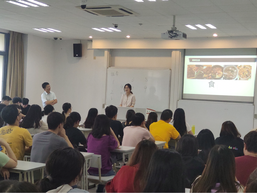 交流会的最后是分组交流时间,全体新老生根据事先安排好的分组名单分成两个教室进行进一步的交流。总共分为九组,每组安排了一名学姐或学长进行更加深入的交流讨论。会议的交流场面互动热烈,新生与老生相谈甚欢。