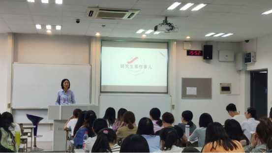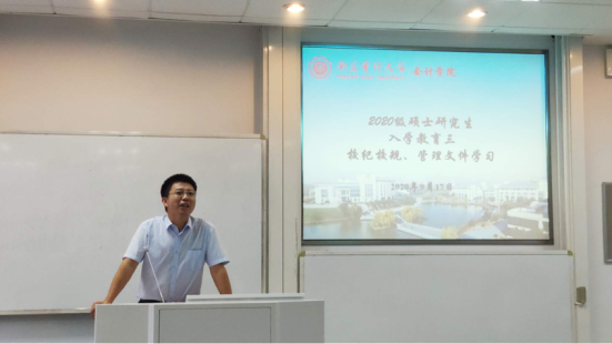 、本科学位点设置情况、往年就业情况、学习建议四个方面进行阐述。他通过展示往年研究生毕业数据督促研究生新生进行未来规划,明确目标,更快潜心投入科学研究工作中去。这对于学生来说无疑是一次精神洗礼,使其更加明确身为研究生的职责,为后续教学任务和研究工作的进行做了很好的准备工作。